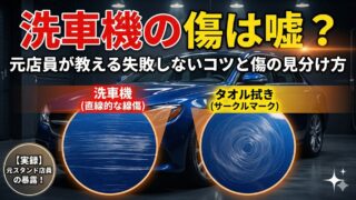 洗車機で傷がつくのは本当?元ガソリンスタンド店員が、洗車機メーカー「ダイフク」の見解を交えて真実を暴露。実は犯人は機械ではなく、あなたの予洗い不足やタオルかも。直線的な傷とサークルマークの見分け方や、傷を防ぐプロの鉄板ルーティンを徹底解説します!