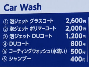 同じ「コーティングウォッシュ」という名前でも、店舗によって使っている溶剤や洗車機の仕様が違いますし、そもそもないお店も存在します。