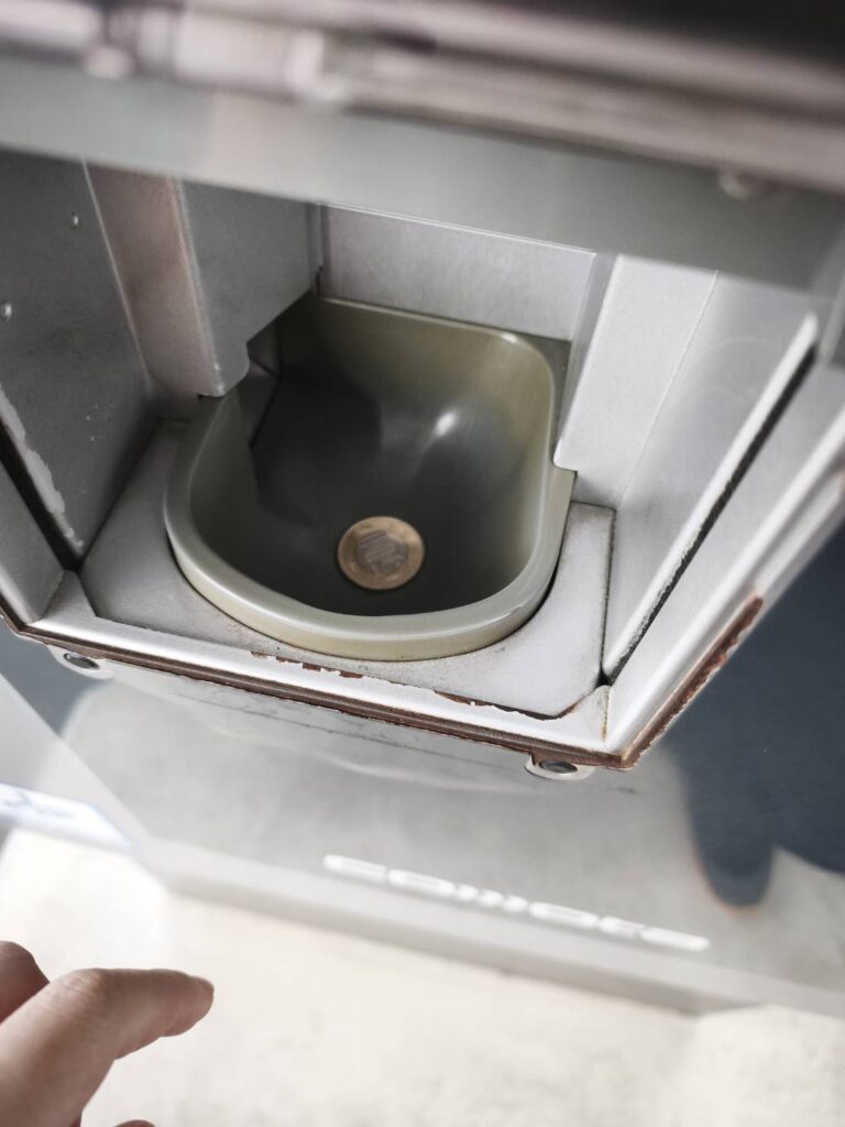お釣りは、精算機があるのでバーコードをかざしてお釣りをもらってください↓